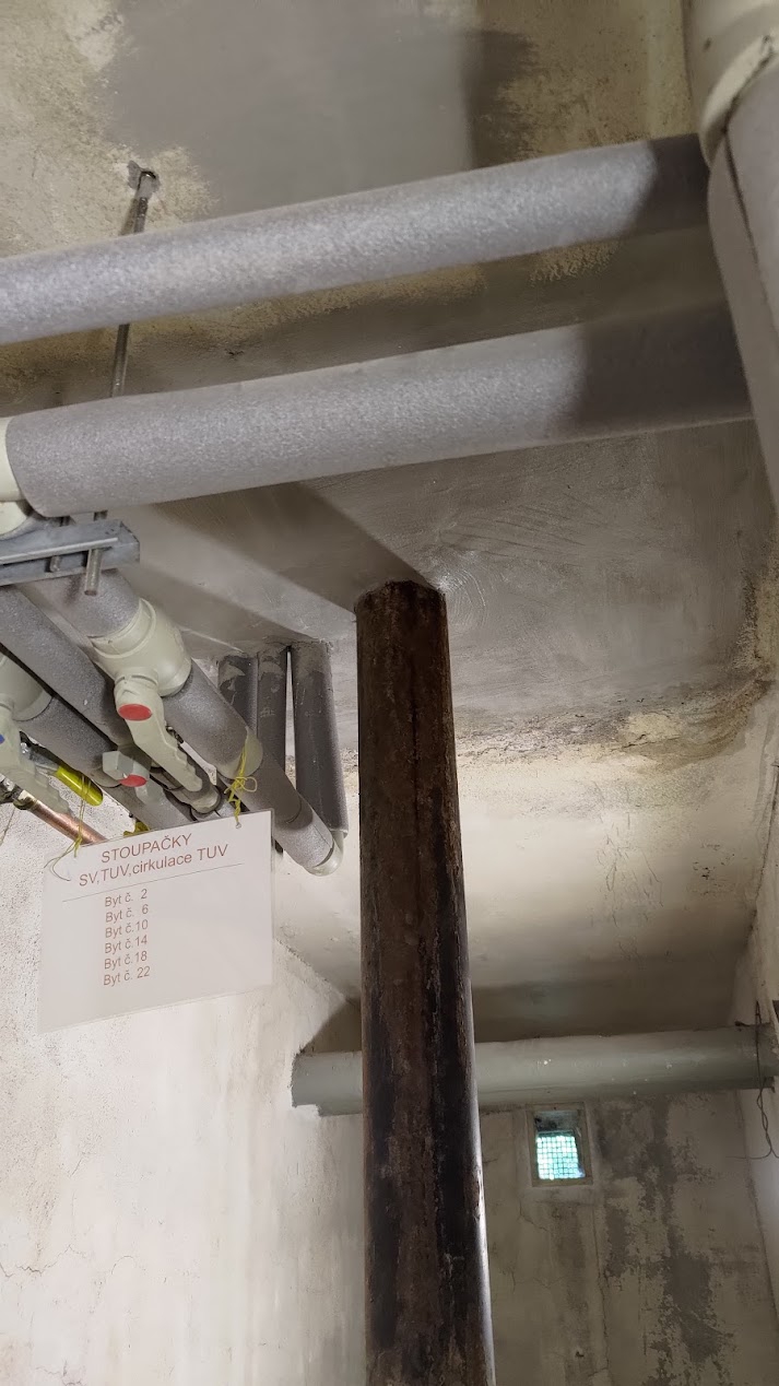 V tomto SVJ jsme zapravili nehezkou díru vedoucí do vodovodní stoupačky a zaizolovali stropy v chodbě a místnosti s TUV. První vstva samozřejmě penetrace, poté dvě vrstvy reflexně izolačního nátěru a je zaizolováno! Důvodem nutné izolace byl problém se studenými podlahami v přízemních bytech přímo nad chodbou a sklípkem. Za zmínku stojí určitě také ušetření financí za páry ponožek, které už nebudou v zimě třeba!